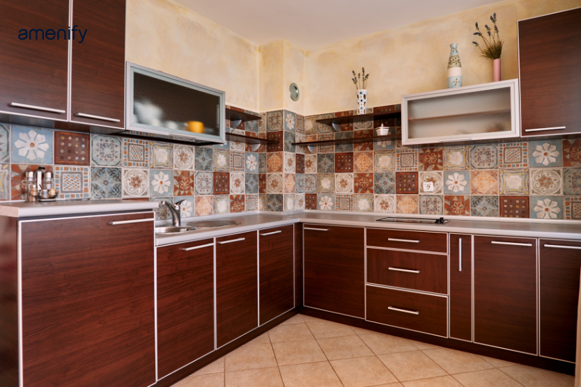 For homeowners who prefer bold interiors, maximalist designs with controlled colour usage can create striking kitchens without looking chaotic.