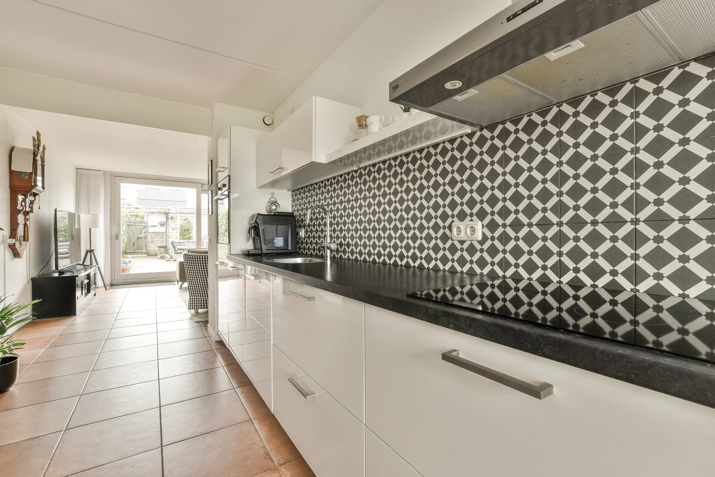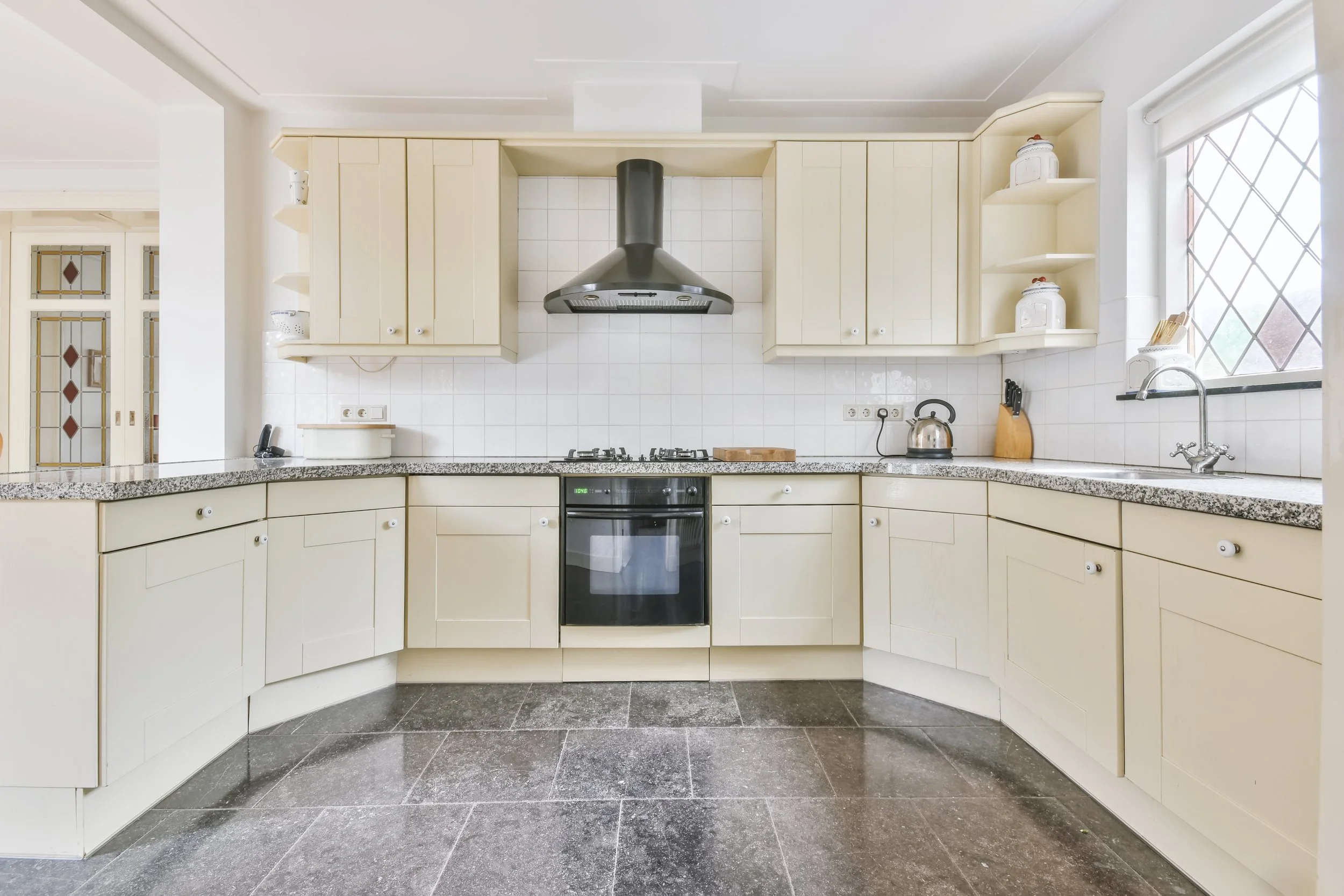 A mid-century look for your kitchen offers a combination of warm-tone colours, geometric shapes, and retro colours to create a stylish, nostalgic feel for your kitchen. Mid-century modern tiles also complement the look of sleek cabinetry, especially those that are made from materials like brass that add to the overall warmth and elegance of the kitchen while still remaining clean and modern.