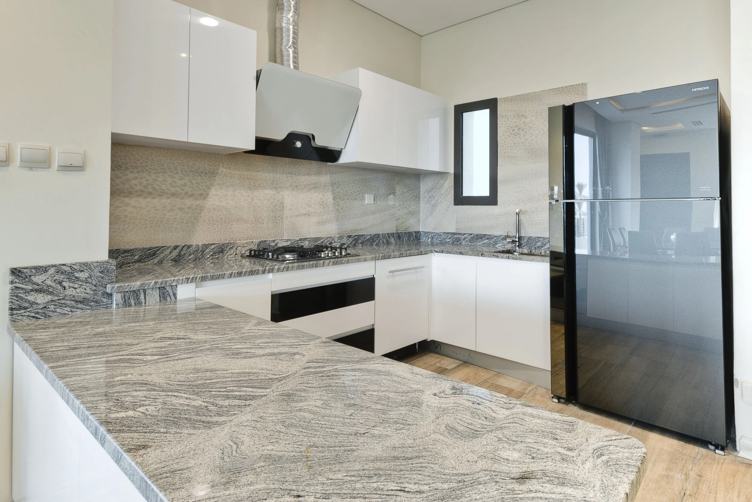Hexagon tiles add structure and geometry while still feeling subtle and modern. Their honeycomb pattern works well for backsplashes and accent areas. They bring texture without making the kitchen look busy.