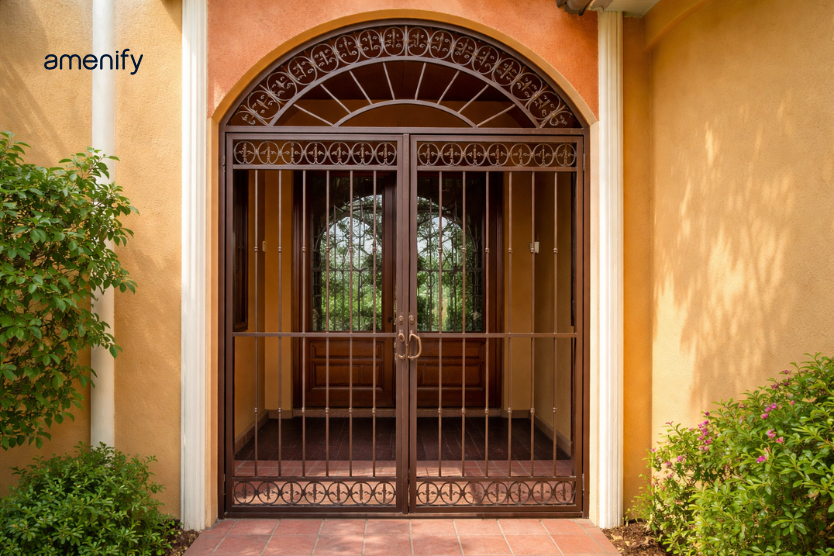 Decorative grills are for homeowners who want security with personality. These grills feature artistic motifs, curved patterns, or symmetrical designs that enhance the look of the entrance.