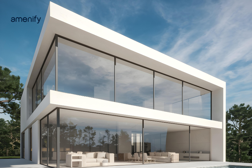 This design style is widely used in modern villas and luxury homes. The combination of glass panels and concrete structures gives a premium and futuristic appearance.