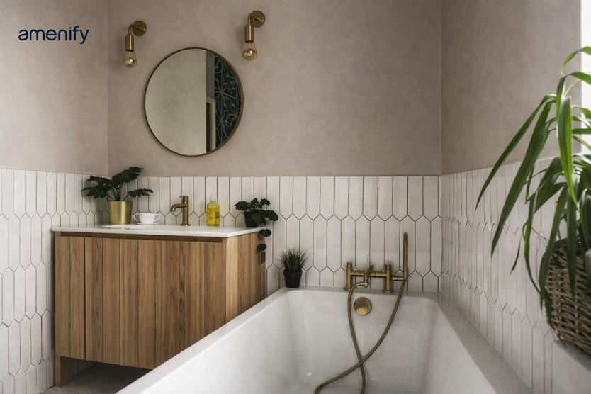 That’s why a thoughtful indian bathroom tiles design prioritises moisture resistance, slip prevention, and easy maintenance without compromising on aesthetics. Amenify home experts often observe that most bathroom problems are caused by poor tile selection, not poor cleaning habits.